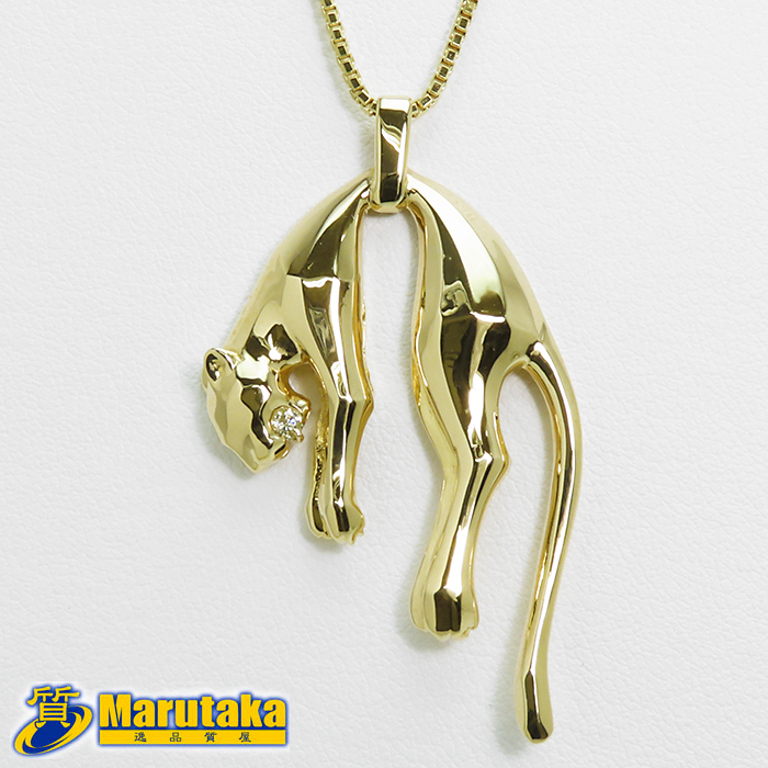 > 【K18 パンサー ネックレス】ダイヤモンド 18金イエローゴールド 動物 アニマル ヒョウ 豹 鑑別書付 約12g 約50cmチェーン ジュエリー 中古