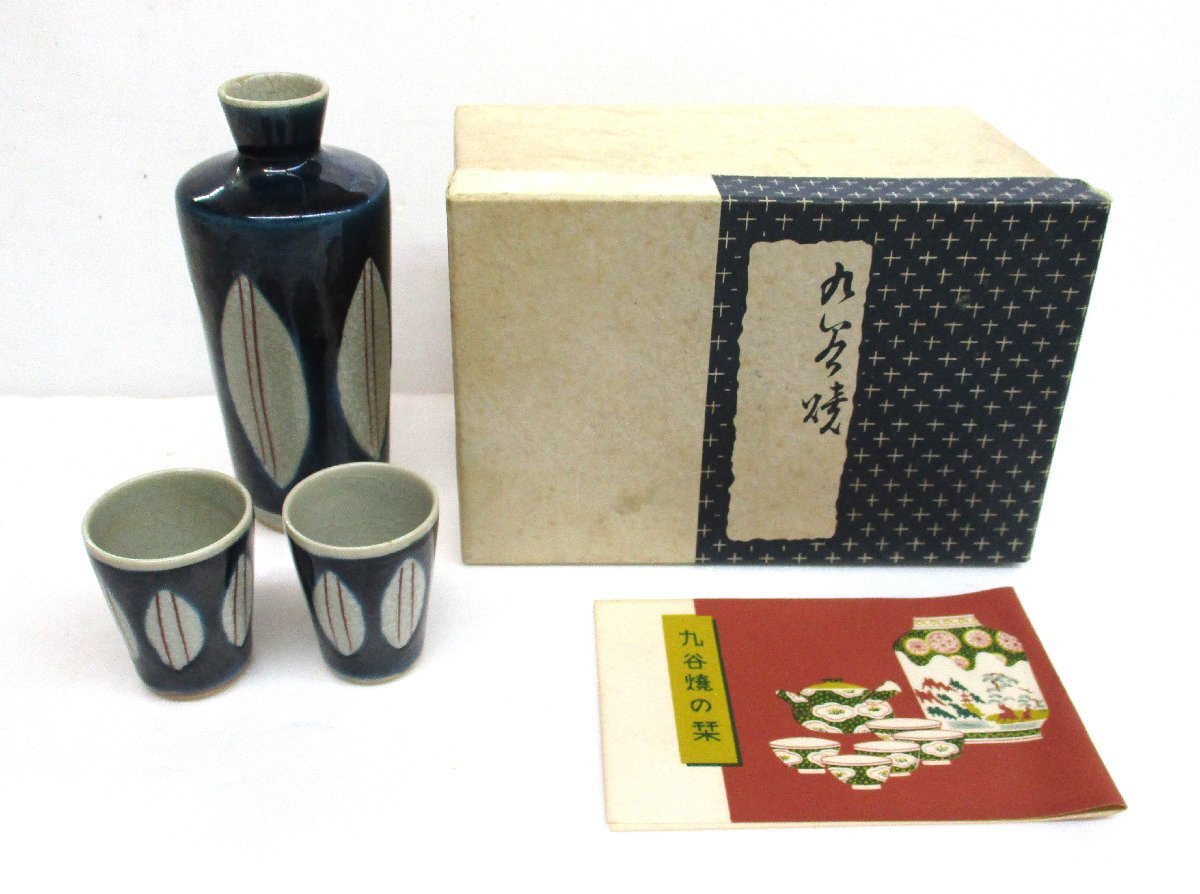 > 酒器 3点セット 九谷焼 玉秀 徳利 お猪口 レトロ 長期保管品 箱栞ヨゴレ有 未使用 101737 ★