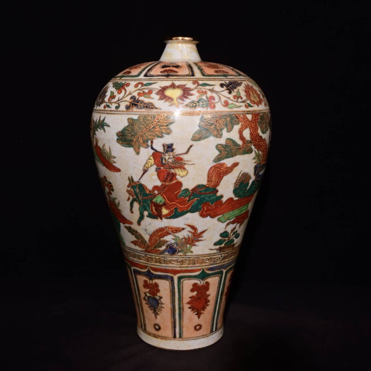 - A_YF0542【惠】人間国宝 中国骨董 陶芸 磁器【元代五彩蒔絵蕭何月下追韓信人物故事紋梅瓶】工芸品 施釉陶 青花磁 陶芸 置物 收藏品