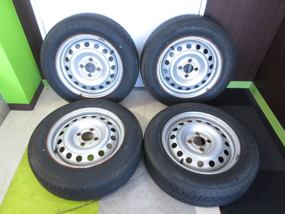 > 11449 カー用品祭 2個口発送 ニッサン 14×5J 100×4穴 +45 日産 K12 マーチ Z11 キューブ 純正ホイール タイヤ 4本 165/70R14 中古品