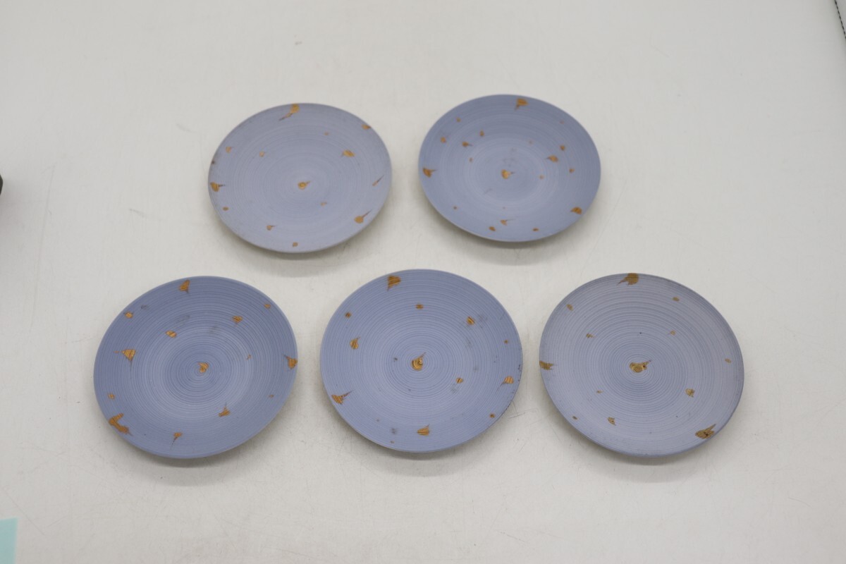 - 益子焼人気作家 坂田甚内作 弦紋金箔小皿5点 向付/菓子皿/懐石料理