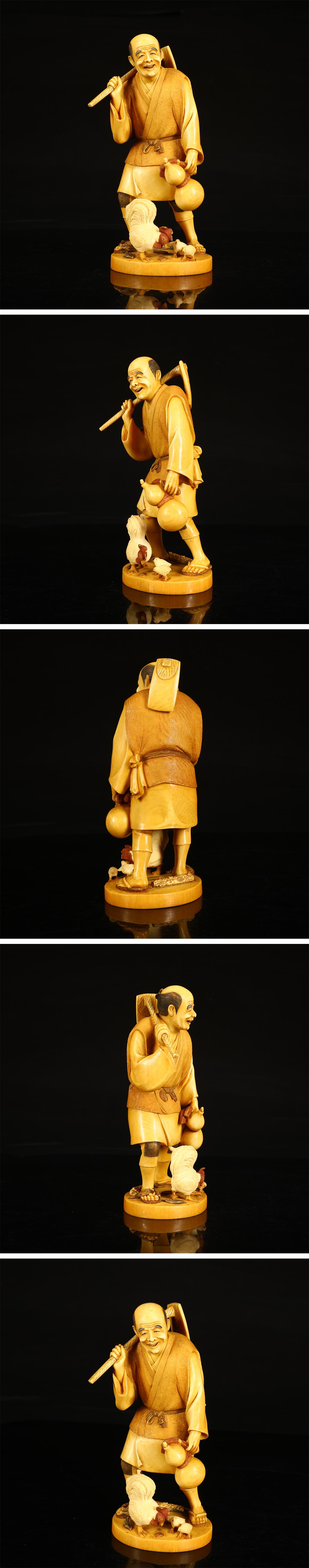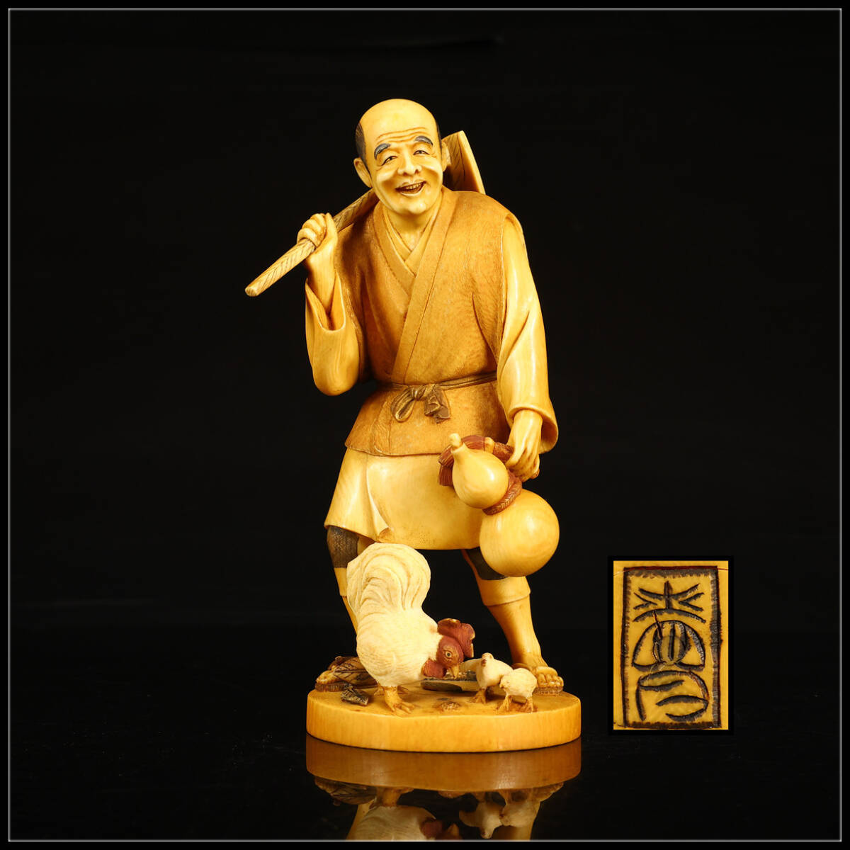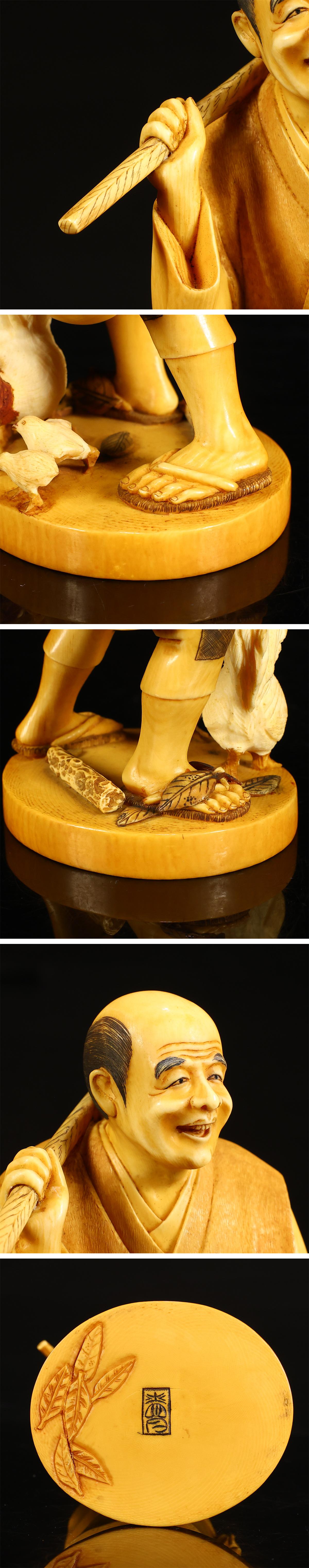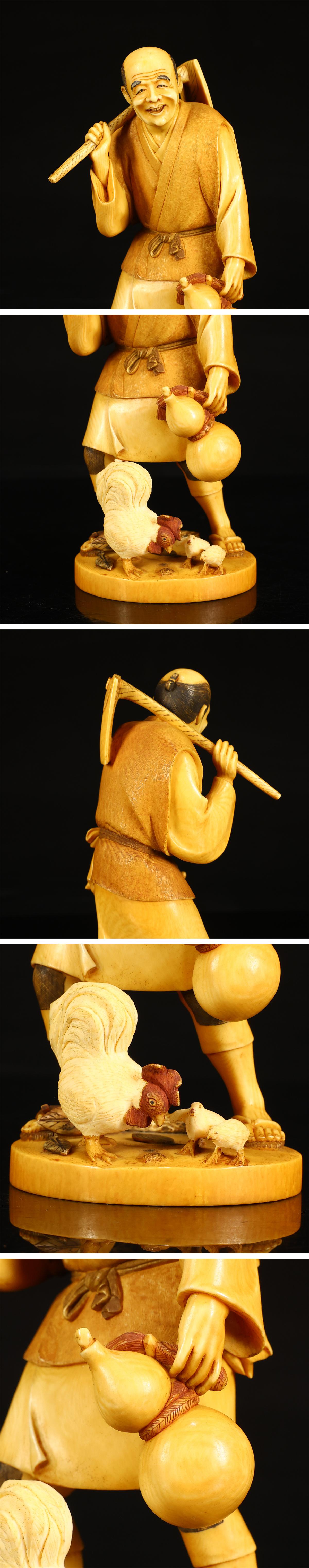 - 久1263 時代 東洋彫刻 農夫と鶏 置物 高18㎝ 重496g 美品S