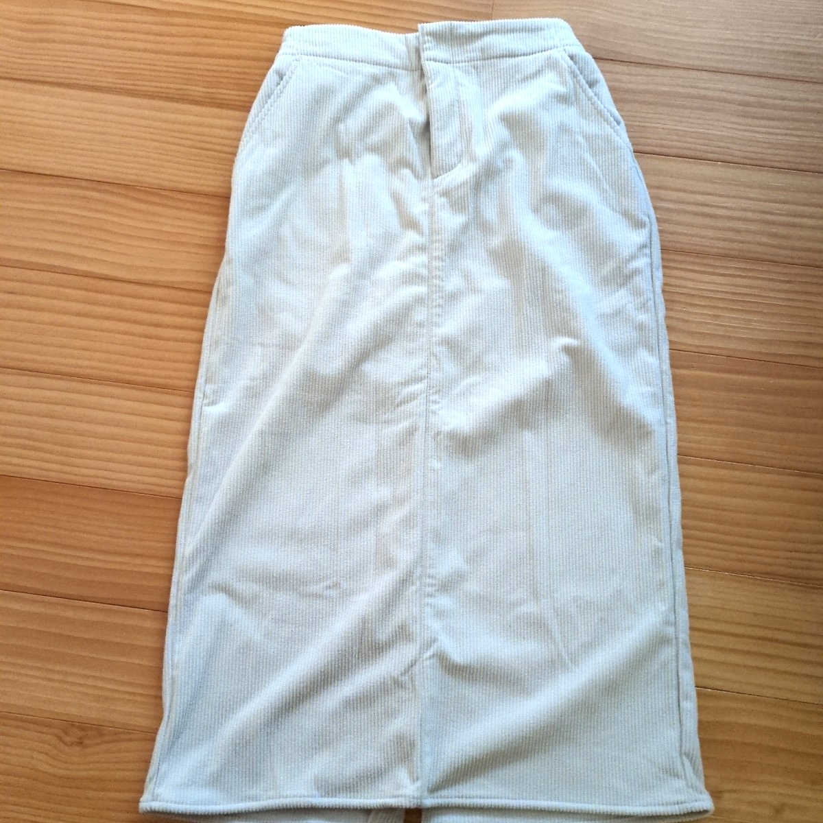 - SHOO.LA.RUE(シューラルー)@ワールド*コーデュロイタイトスカート ロング バックスリット アイボリー ベージュ M あったか