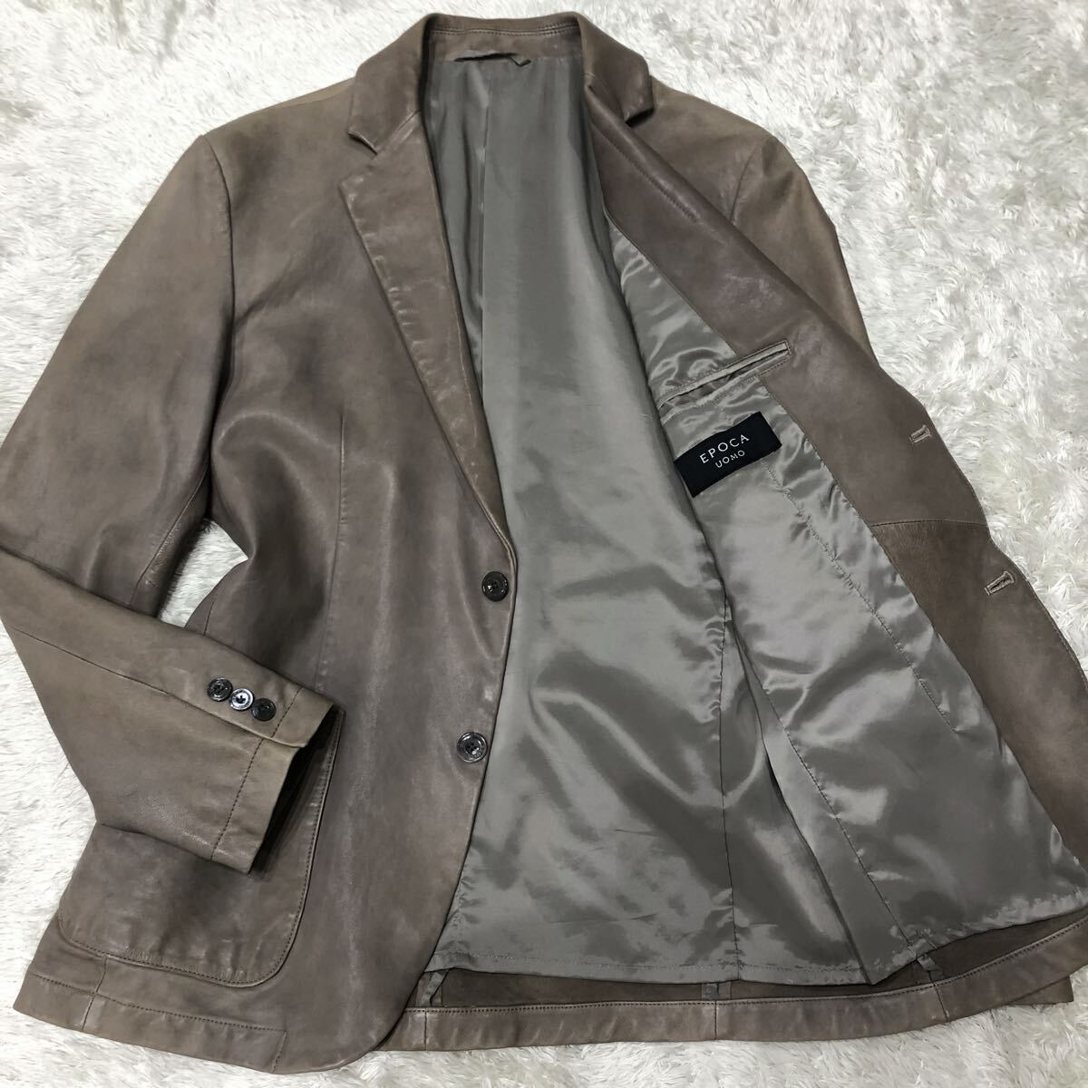- エポカウォモ【トロトロの肌触り】EPOCA UOMO レザー テーラードジャケット グレー系 2B 総裏地 ラムレザー 羊革 高級感 46(M相当)