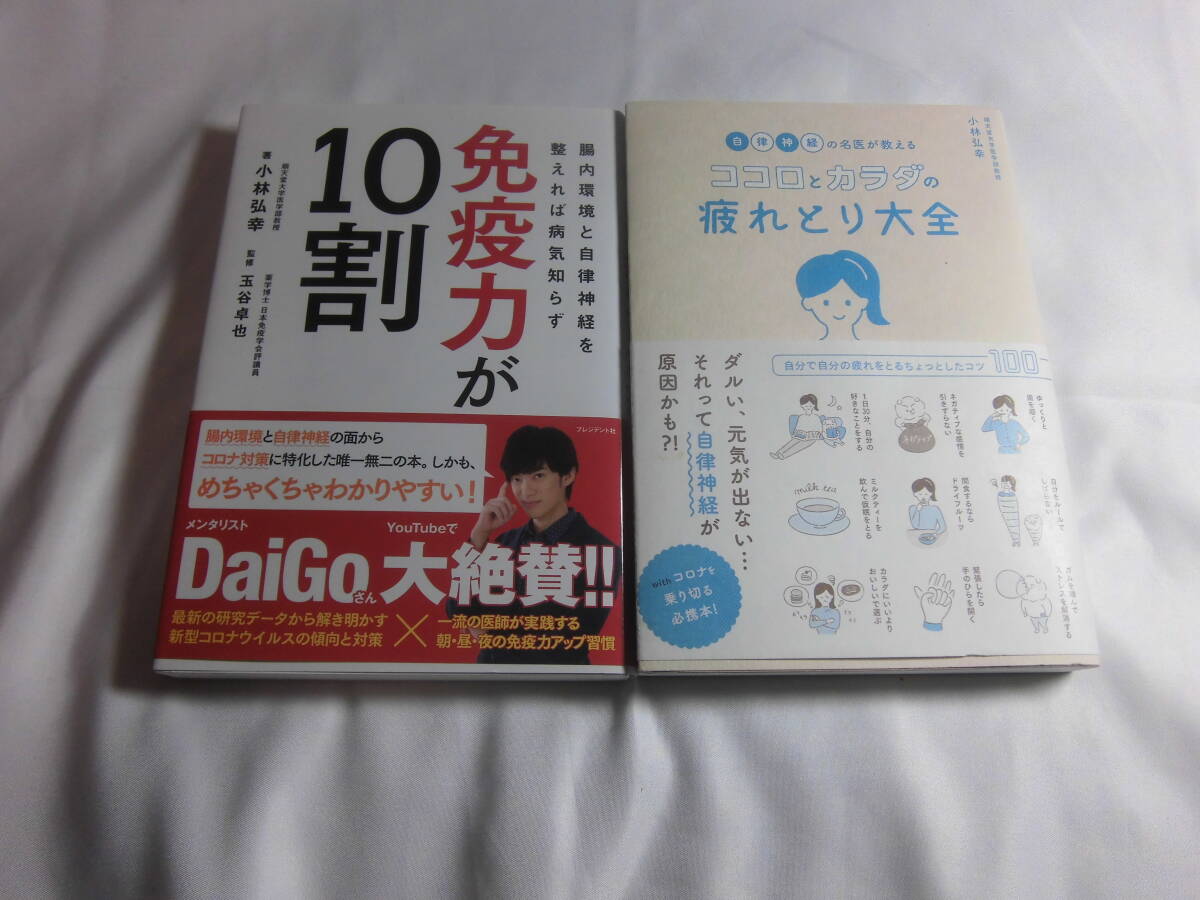 「免疫力が10割 腸内環境と自律神経を整えれば病気知らず」小林 弘幸 (著) 2020年初版定価1100円+税。と「自律神経の名医が教えるココロとカラダの疲れとり大全」小林 弘幸 (著) 2021年初版定価1300円+税。の計2冊セット。