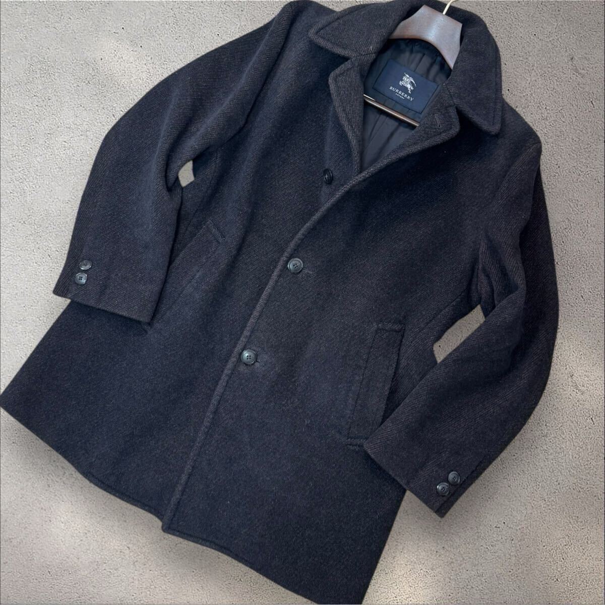 > F10 最高峰アンゴラ!!極上の名品!!定価20万 ●BURBERRY LONDON●最高級ステンカラーコート ツイード ジャケット バーバリー メンズ M〜L