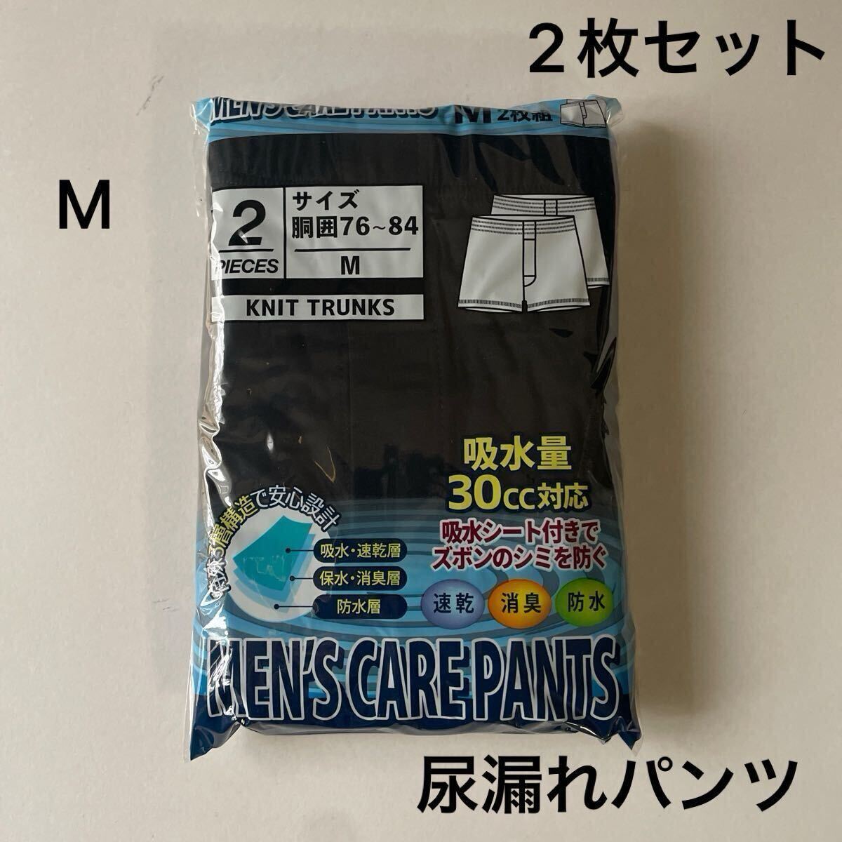 - 2枚組 M 尿漏れパンツ 失禁パンツ 尿もれパンツ ニット トランクス 前開き メンズ 男性用 紳士 尿染み ちょい漏れ ブリーフ 30cc 吸水 黒♪