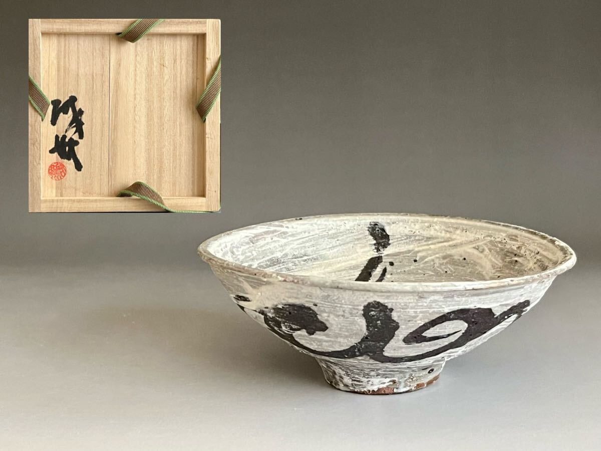 - 槙啓州 七宝山旺禅寺窯 絵刷毛目 鶏龍山 茶碗 岡田宗叡推薦文付き 茶道具 高麗茶碗