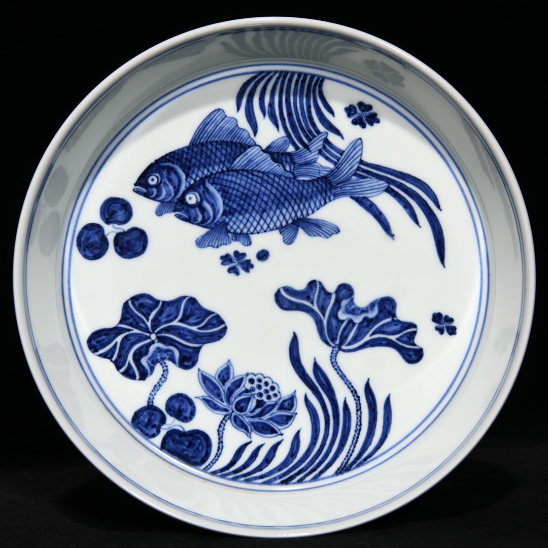 - 旧 明宣徳 青花 魚藻紋洗い 唐磁 古陶磁器 中国古美術 古賞物 古置物 唐物 S710