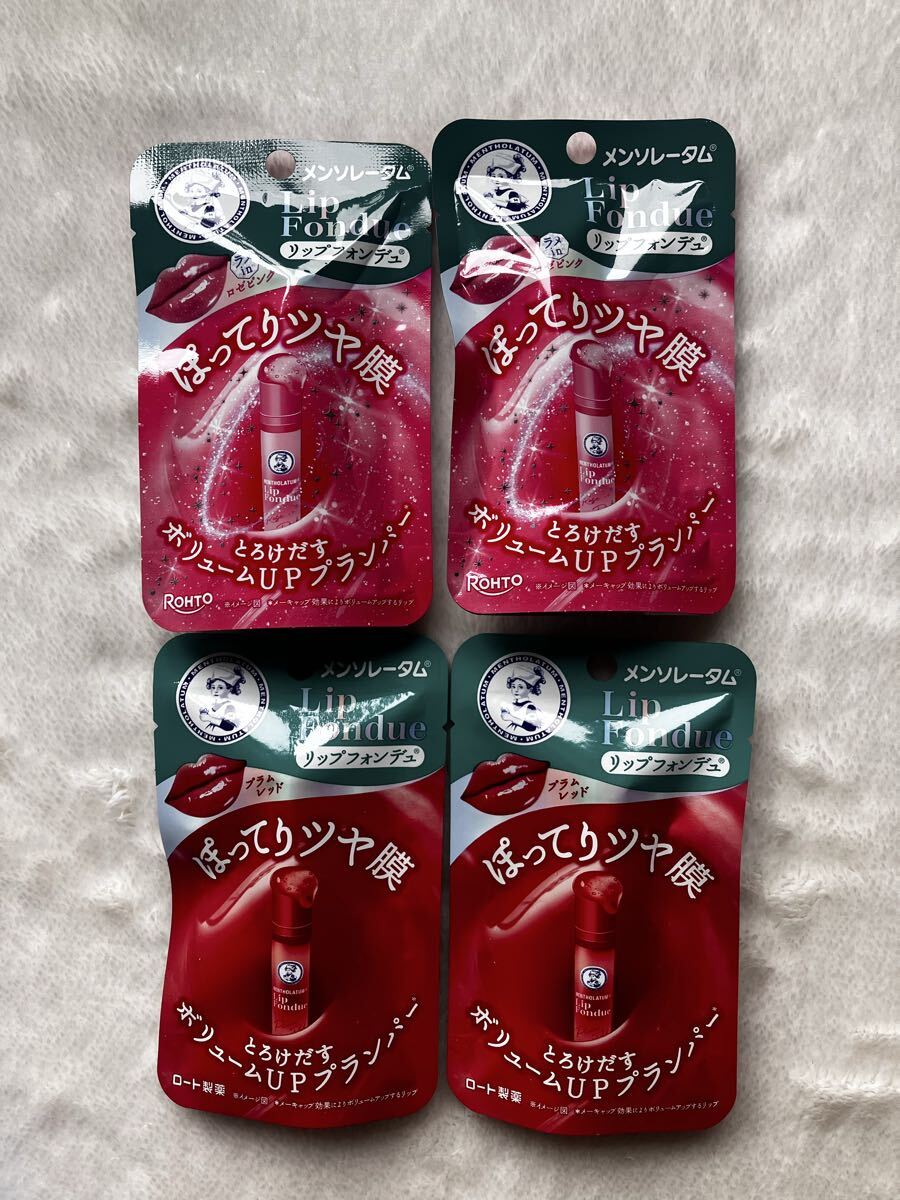 - 購入1週間以内 送料180円 ロート メンソレータム リップフォンデュ リップクリーム ぽってりツヤ膜 4本 とろけだす