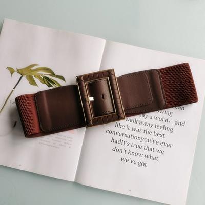- Ab【大きな 幅広ゴムベルト】 コーヒー色ゴールド バックル 太ベルト