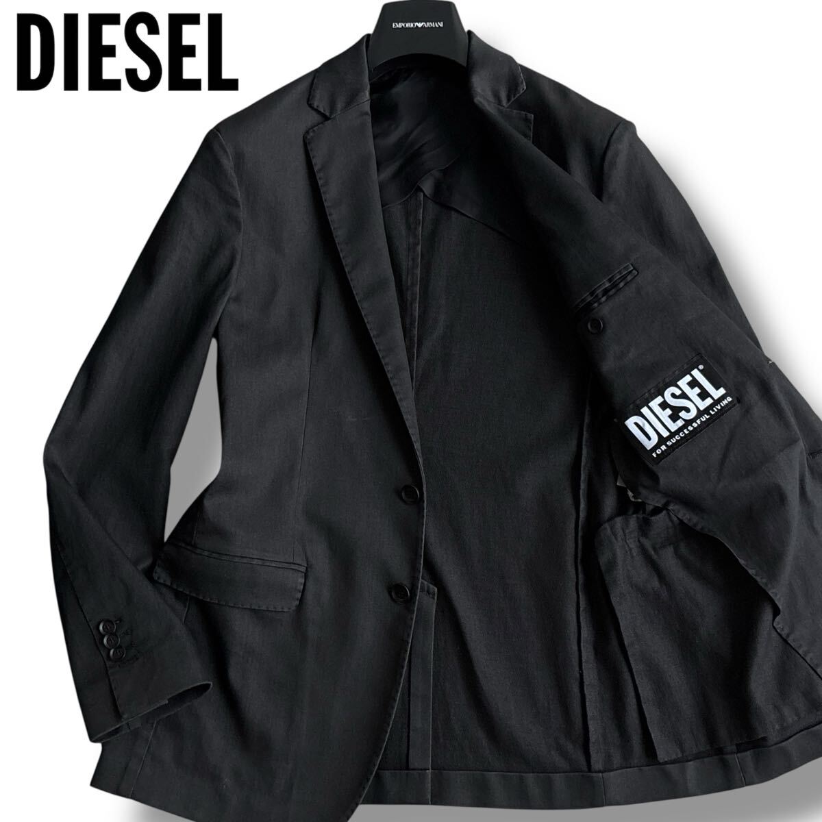 > 美品■DIESEL ディーゼル【L】テーラードジャケット デニム ストレッチ素材 ブラック 黒 レザーパッチ 2B 現行タグ