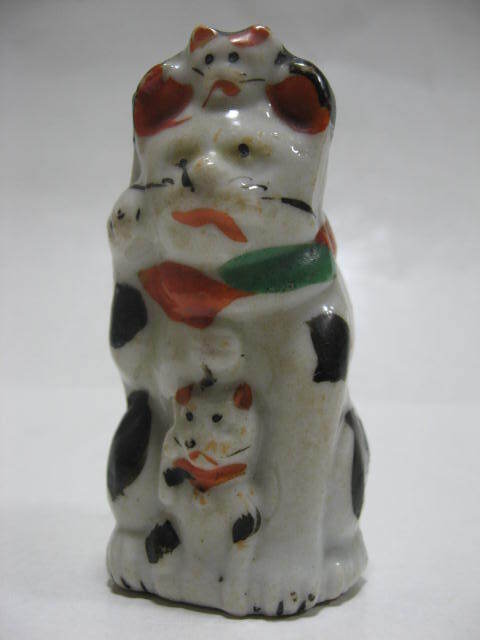 - ★珍!明治後期 親子3匹が縦に並んだ招き猫人形 縁起物陶器製古民具レトロ置物ミニチュア動物三毛猫子宝意匠★