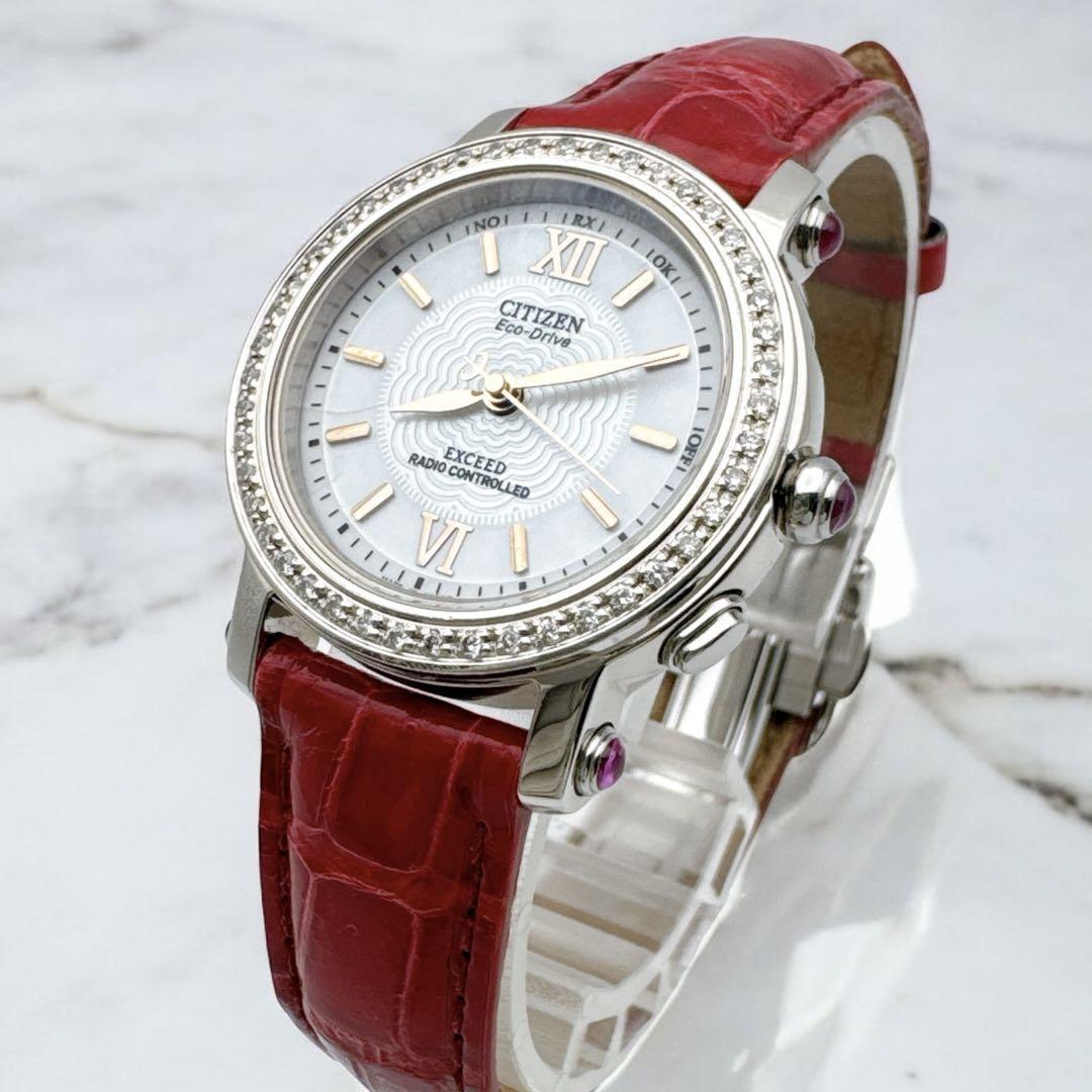 - 稼働 CITIZEN EXCEED シチズン エクシード ダイヤベゼル シェル文字盤 エコドライブ 電波ソーラー腕時計 レディースウォッチ