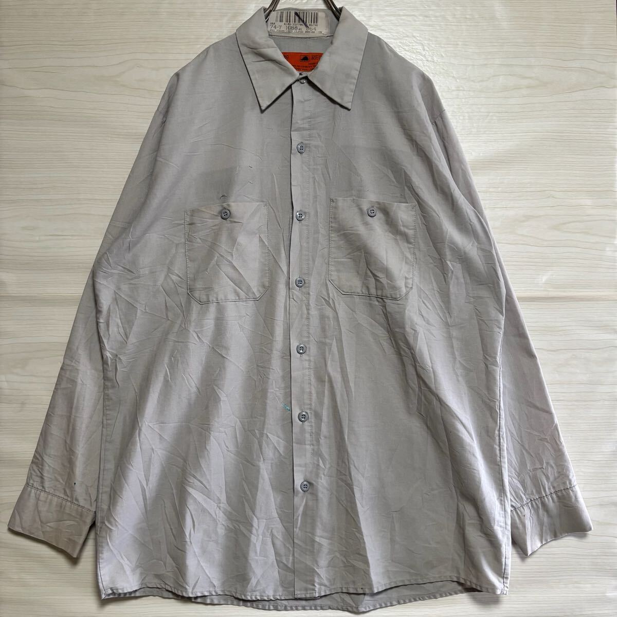 > REDKAP レッドキャップ 長袖シャツ レギュラーカラー ワークシャツ 胸ポケット サイズL グレー コットン メンズ トップス (33)