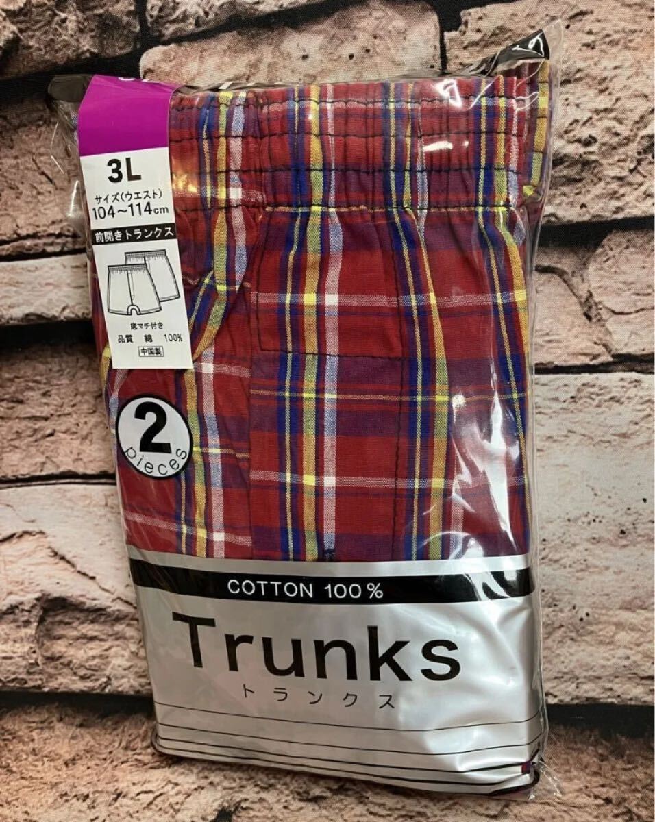 - 送料無料!『2枚組』綿100% 快適な肌ざわり ベーシックな先染め格子柄 底マチ付き 前開きトランクス(3L)