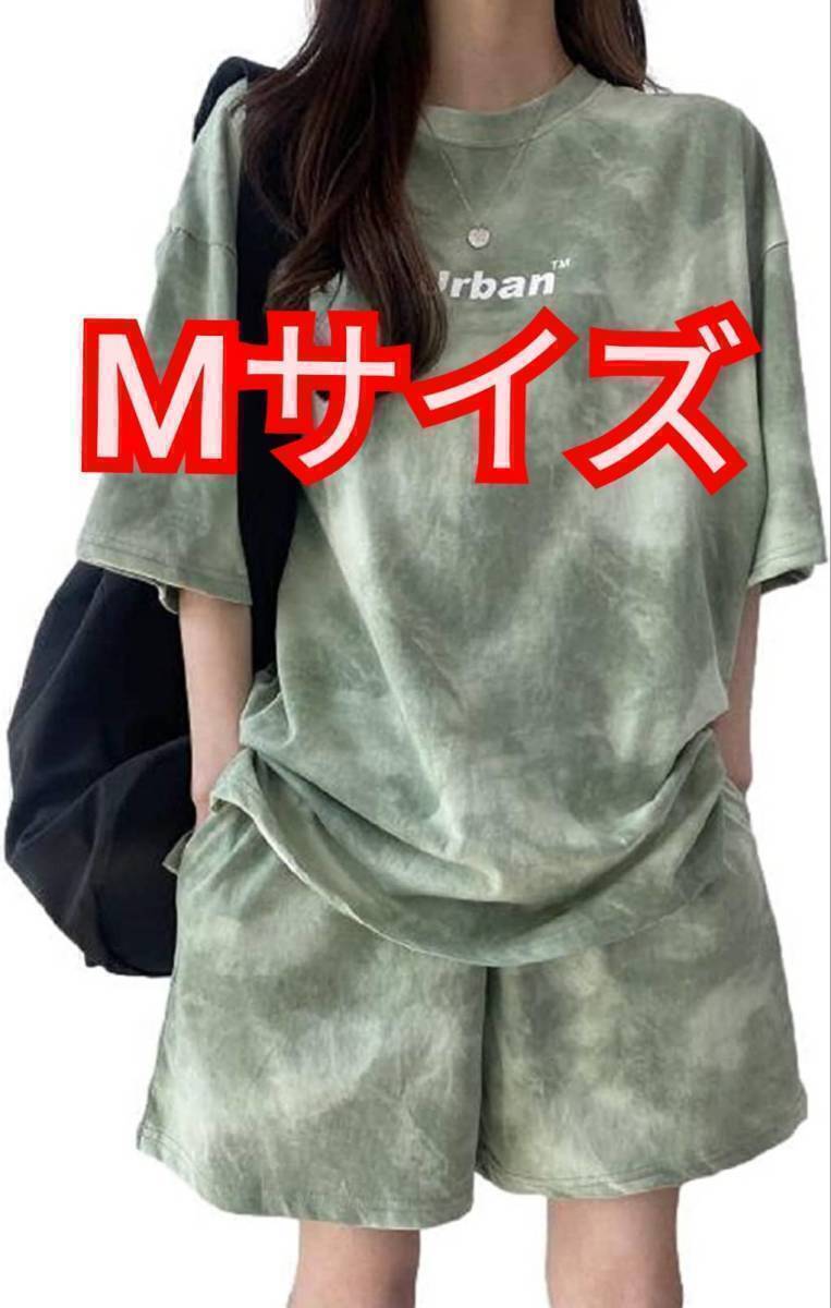 - 送料無料 Tシャツ 短パン 2点上下 セット Mサイズ グリーン 1/2style アップ ルーム ウェア レディース 新品 未使用 上下セット