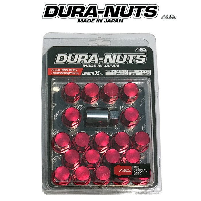> MID DURA-NUTS ジュラルミンロック&ナットセット L35 レッド M12×P1.25 5H用 20個パック