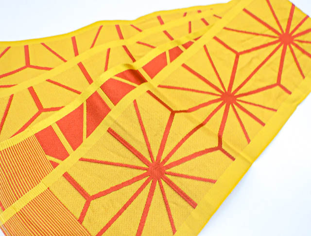 - 《京都一輝堂》【着物】 半幅帯 本場筑前博多織 麻の葉文様 証紙付き 24W-952