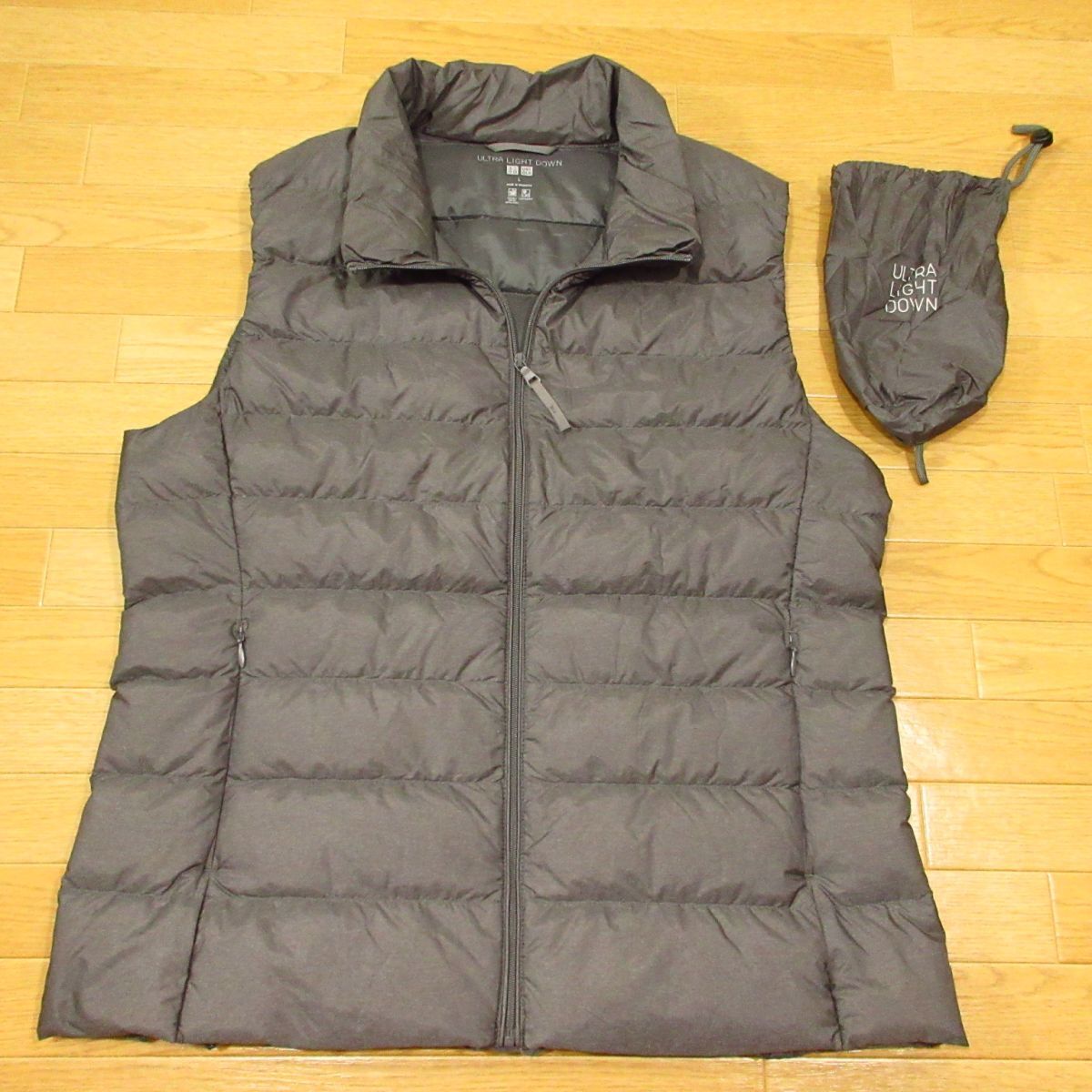 > ◎極美品!UNIQLO ユニクロ 袋付き!ウルトラライトダウンベスト 防寒 軽くてあたたかい! レディース グレー Lサイズ◆AA4774