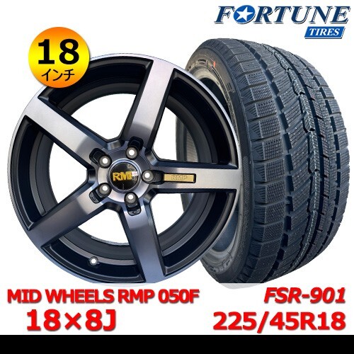 - 送料無料 新品タイヤ&ホイール18インチ4セット【MID WHEELS RMP 050F 18×8J+42 114.3×5】【フォーチュン FSR-901 225/45R18 】MHOT-117
