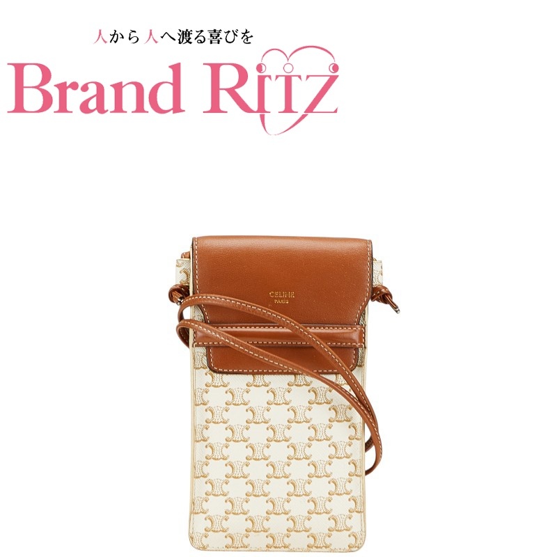 - 中古 セリーヌ トリオンフ 斜め掛け ショルダーバッグ フォンケース ABランク ホワイト ブラウン 【送料無料】【名谷店】