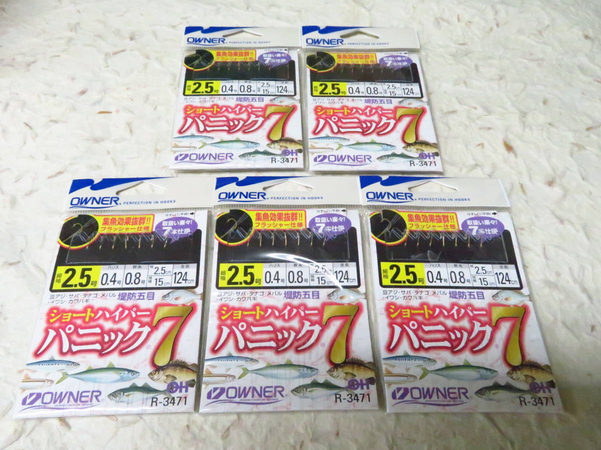> オーナー ショートハイパーパニック7 2.5号 5枚セット R‐3471 堤防五目 豆アジ サバ タナゴ メバル イワシ カワハギ