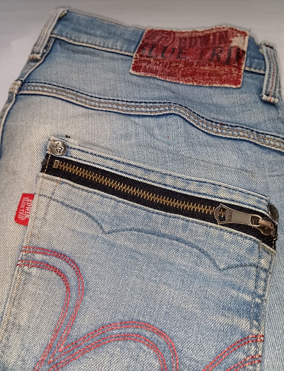 > ☆EDWIN BLUE TRIP日本製W30ライト青色ブルー デニム ロング パンツ長ズボン ボトムス ジーパン ジッパー付ポケット2㈱エドウィン ジーンズ