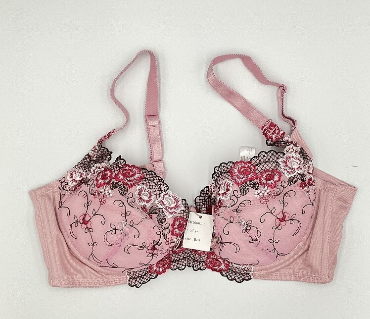 - CR 16661 IB⑦【特価】新品 大きい ブラジャー B85 ストロベリーピンク 花柄 レース リボン 脇高 刺繍 ストレッチ レディース