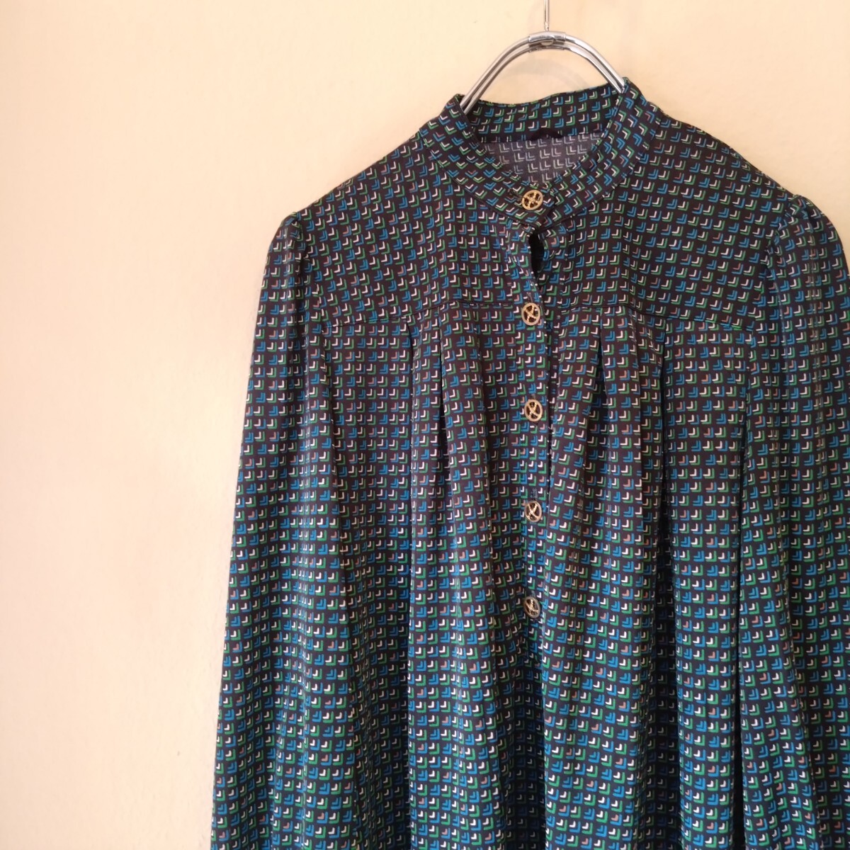 - プルオーバーブラウス スタンドカラー レトロ 柄シャツ /Y4153
