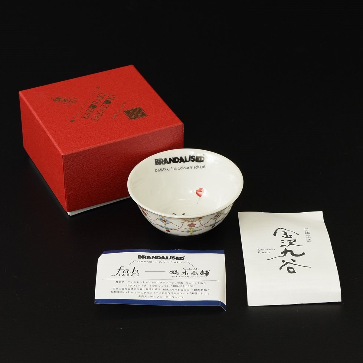 - ◎528614 未使用品 九谷焼 鏑木商舗 希少 BRANDALISEDコラボ 盃 バンクシー『Balloon Girl』×瓔珞文 完売品 伝統工芸 酒器 酒盃