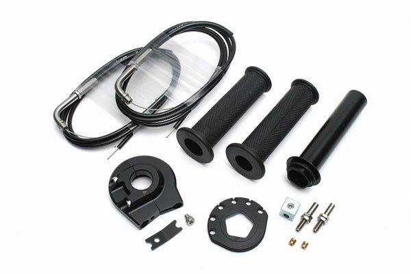 ほぼすべてのハンドルに対応可能な最長1400mmの汎用ワイヤーを付属した、ハイスロットルキットEVO2の汎用キット。