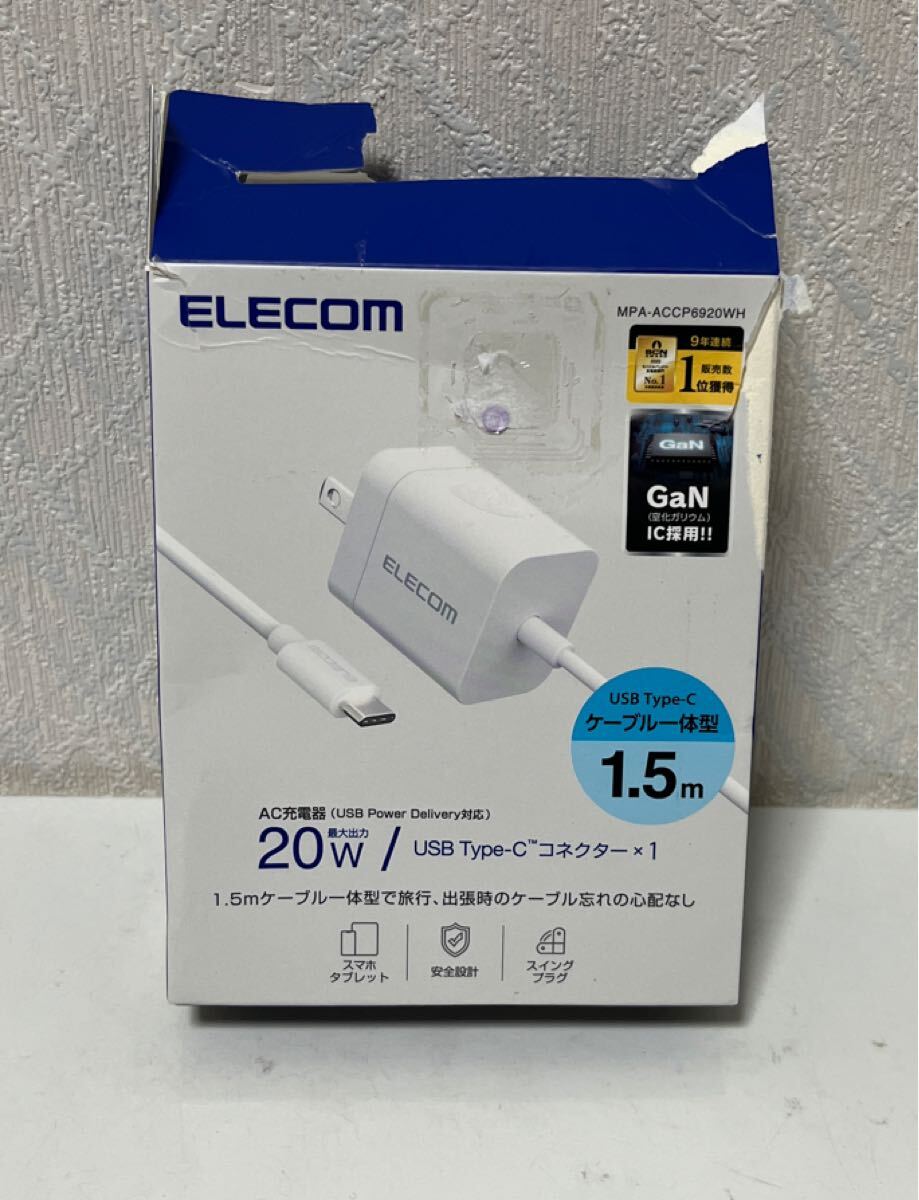 - 710i1301 エレコム 充電器 Type-C ケーブル一体型 1.5m USB PD対応 20W PSE認証品 GaN採用 折りたたみ式プラグ ホワイト