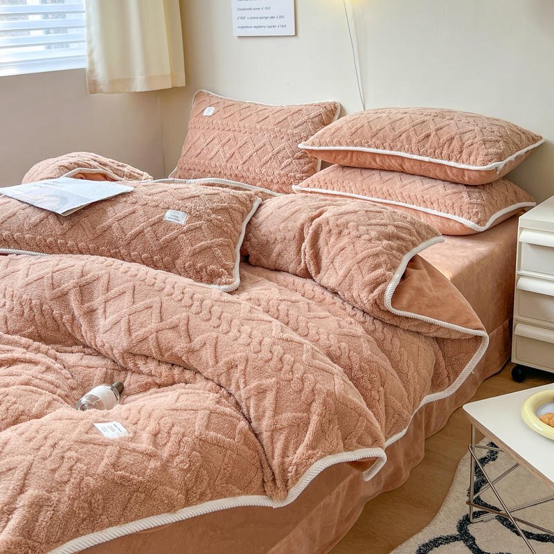 - ボアシーツ4点セット 掛け布団カバーセット 敷きカバー ふとんカバー 枕カバー ベッド用 暖かい 防寒 洗える キャメル キング2Mベッド用
