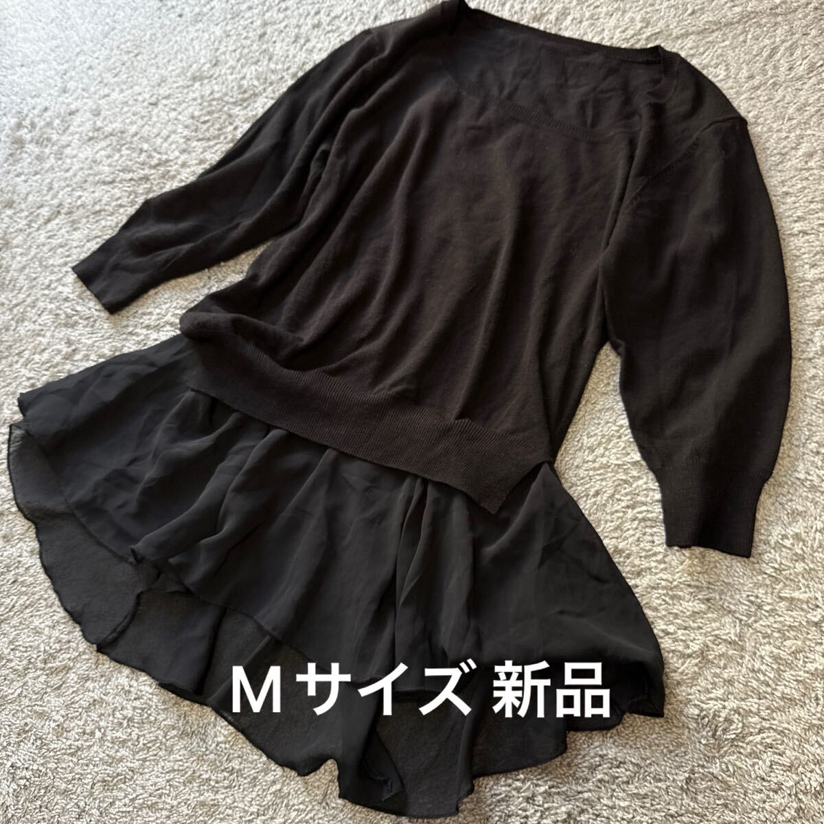 - 取り外し可能裾シフォンフリル七分袖ニット黒M★ゆうパケット配送可能★新品30