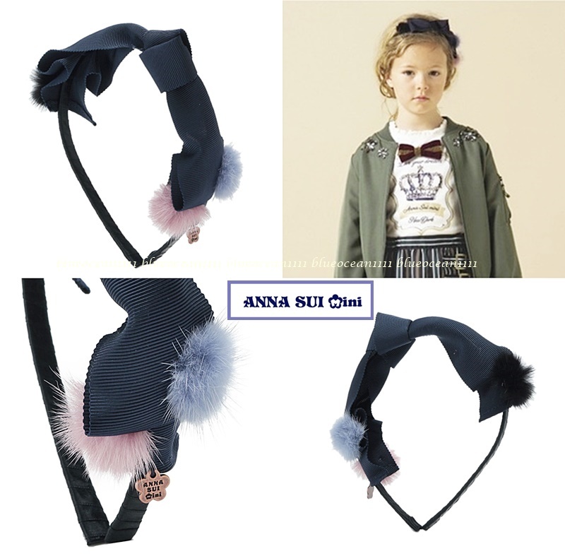 - 新品 5,980円 セレモニーや発表会などにもピッタリ【アナスイミニ】ミンクぽんぽんファーリボンカチューシャ ワンピ スカート130 140 150cm