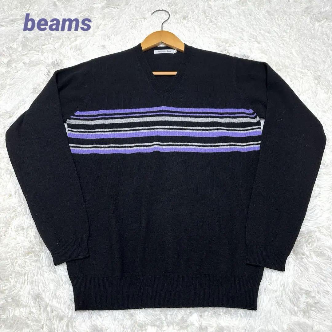 - 【ビームス】/beams/Vネックニットセーター/(S)/ボーダー/カシミヤ