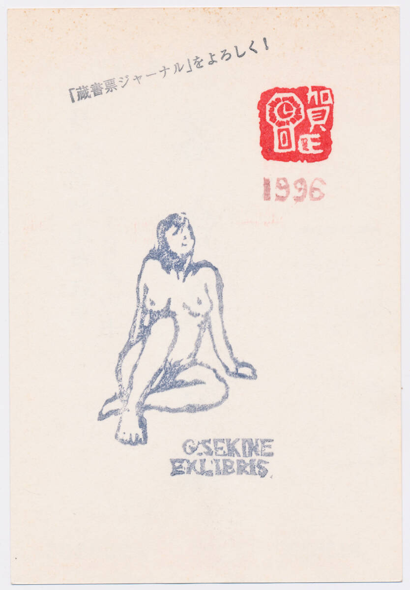 - ■関根烝治 年賀葉書/平成8年、日本書票協会会長、真作