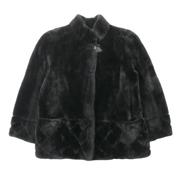 - GS3186◇シェアード ヌートリア スタンドカラー ファージャケット ファーコート ハーフ丈 ブラック系 毛皮コート