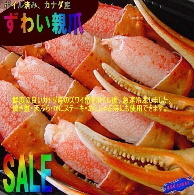 - 3個、美味「ずわい親爪M-1kg」(1パック41-50本入り)AA級品...食べやすい、リングカット