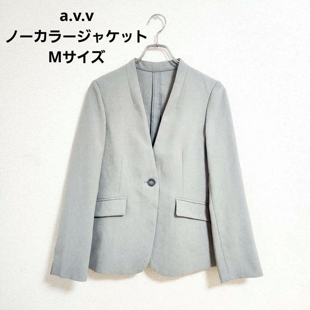 - a.v.v ノーカラージャケット グレー M 上品 フォーマル 通勤 おしゃれ