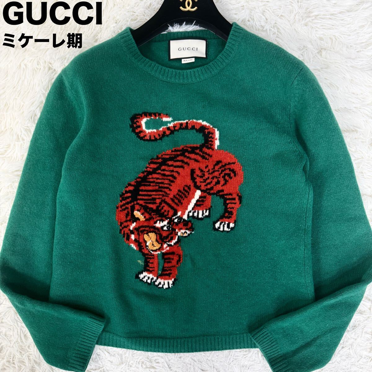 > 美品 GUCCI 現行タグ アレッサンドロ・ミケーレ期 刺繍 タイガーグッチ 虎 ウール ニット セーター メンズ レディース ユニセックス グッチ