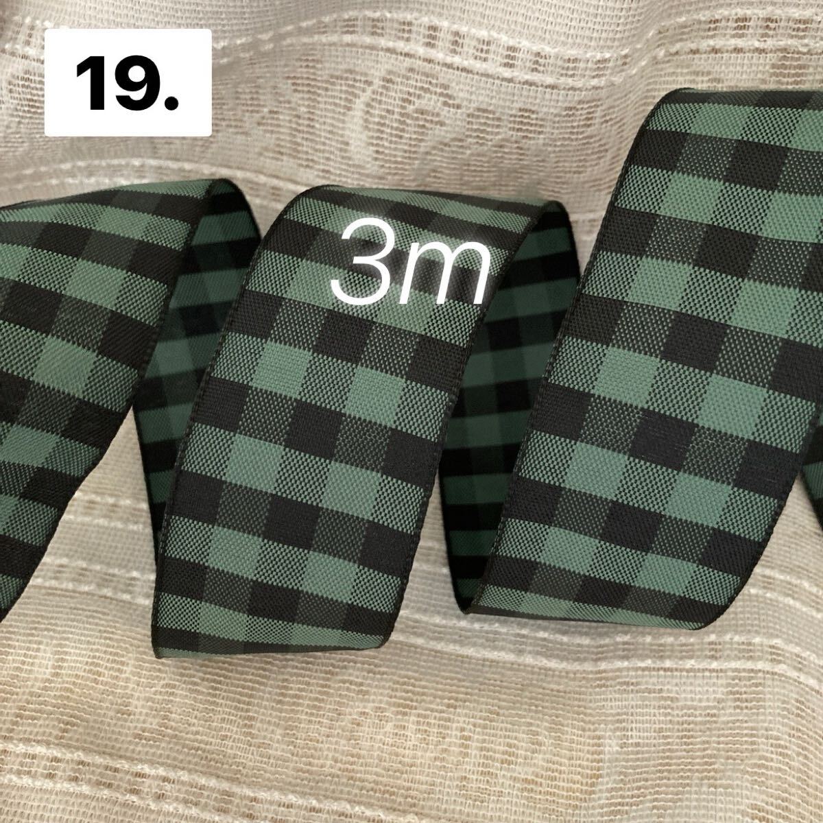 - リボン切り売り 3m 約3.8cm幅 クリスマスリボン 緑と黒のチェック柄 市松模様 ギンガムチェック