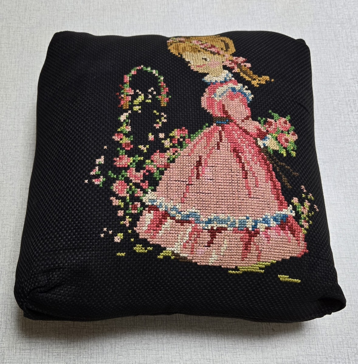 - 洋風 クッション 黒ブラック 女の子 ヴィンテージ ビンテージ レトロ レア