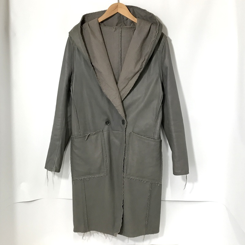> NO ID. レザーコート 442030-518L フーディー ロングコート 羊革 JACKET シンプル 古着 サイズ2 M相当 ノーアイディー アウター A13443◆