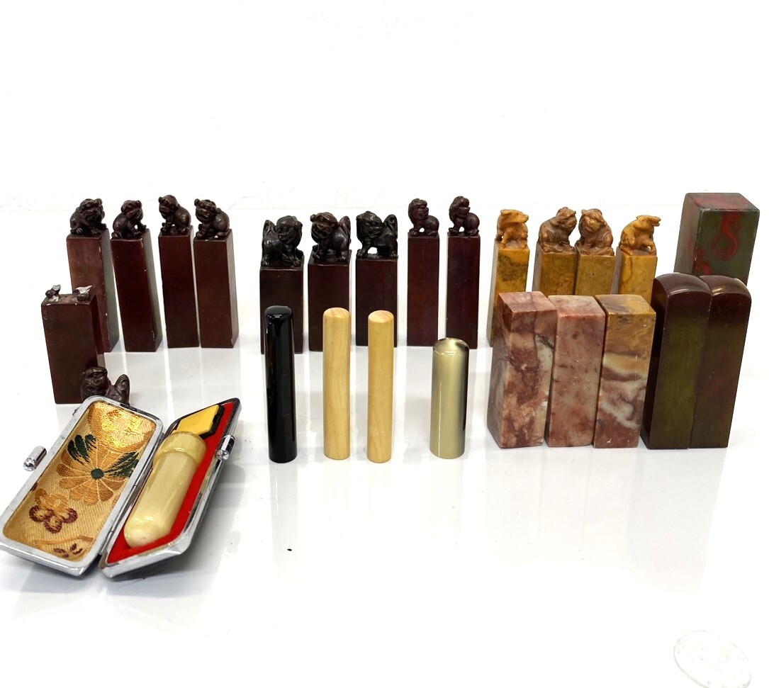 - ※ 印材まとめ約932g! 印鑑 中国 狛犬 牛 古印材 石 木 大理石 ジャンク扱い【C2674~】