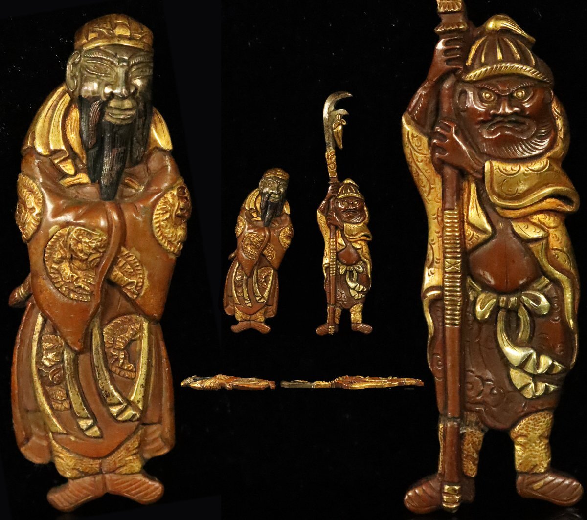 - 【ASAHI】時代武具 素銅地色絵南蛮人大型目貫 特大9cm 出来抜群 保存候補 希少 刀装具[79107uu]