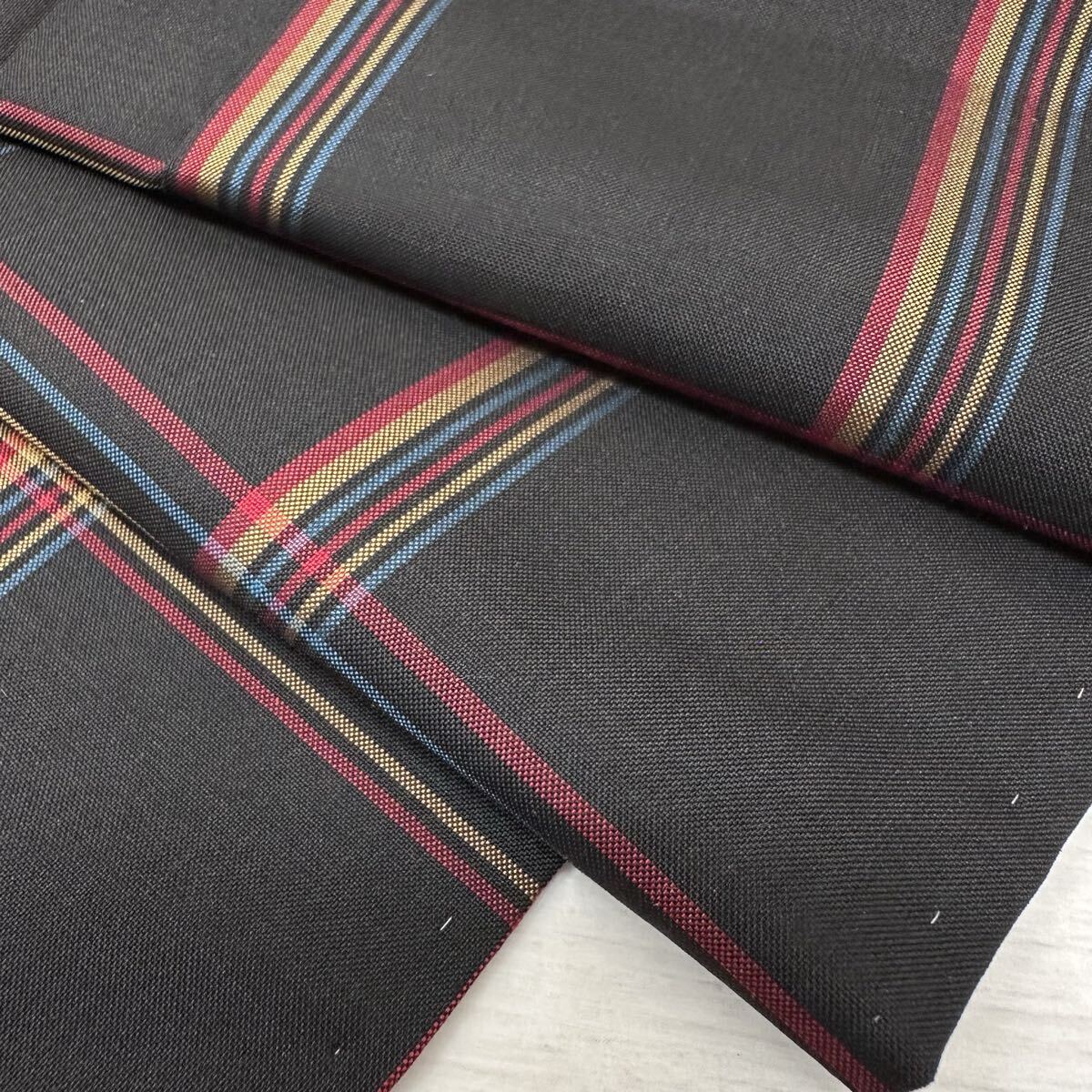 - 格子柄大島紬 可愛い黒地 着物 正絹 袷 広衿 Q-017