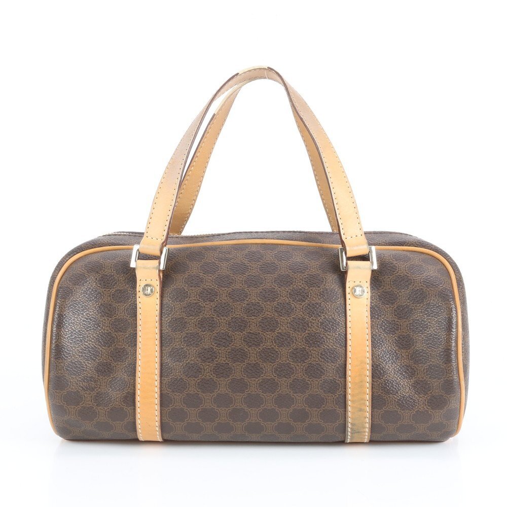- 1円■極美品■ヴィンテージ■セリーヌ■マカダム ミニ ボストン レザー ハンドバッグ トート ブラウン 茶色 レディース RUE CV25-7