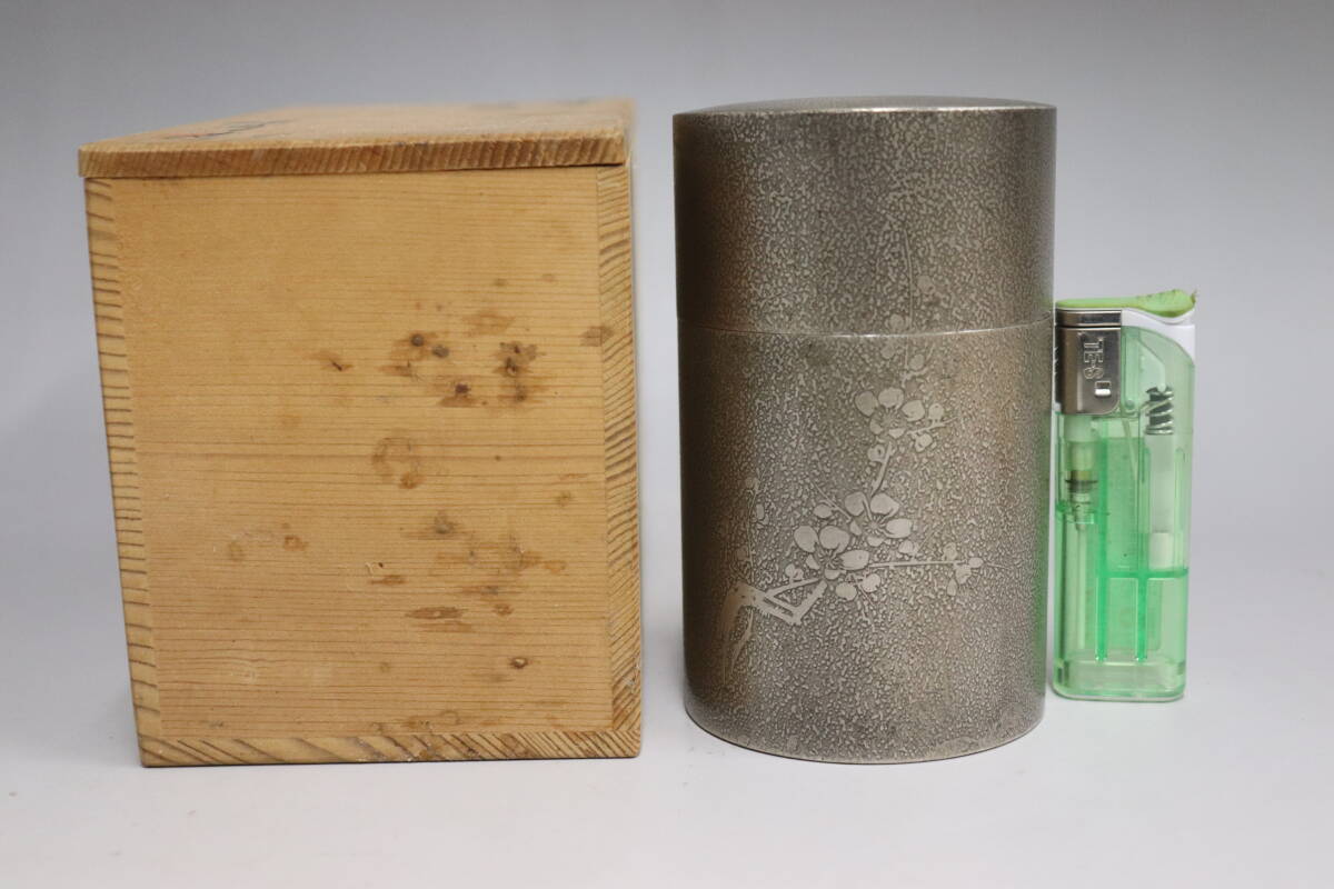 - 時代 純銀製 梅図 茶入 529g 古美術品 (材質不明)